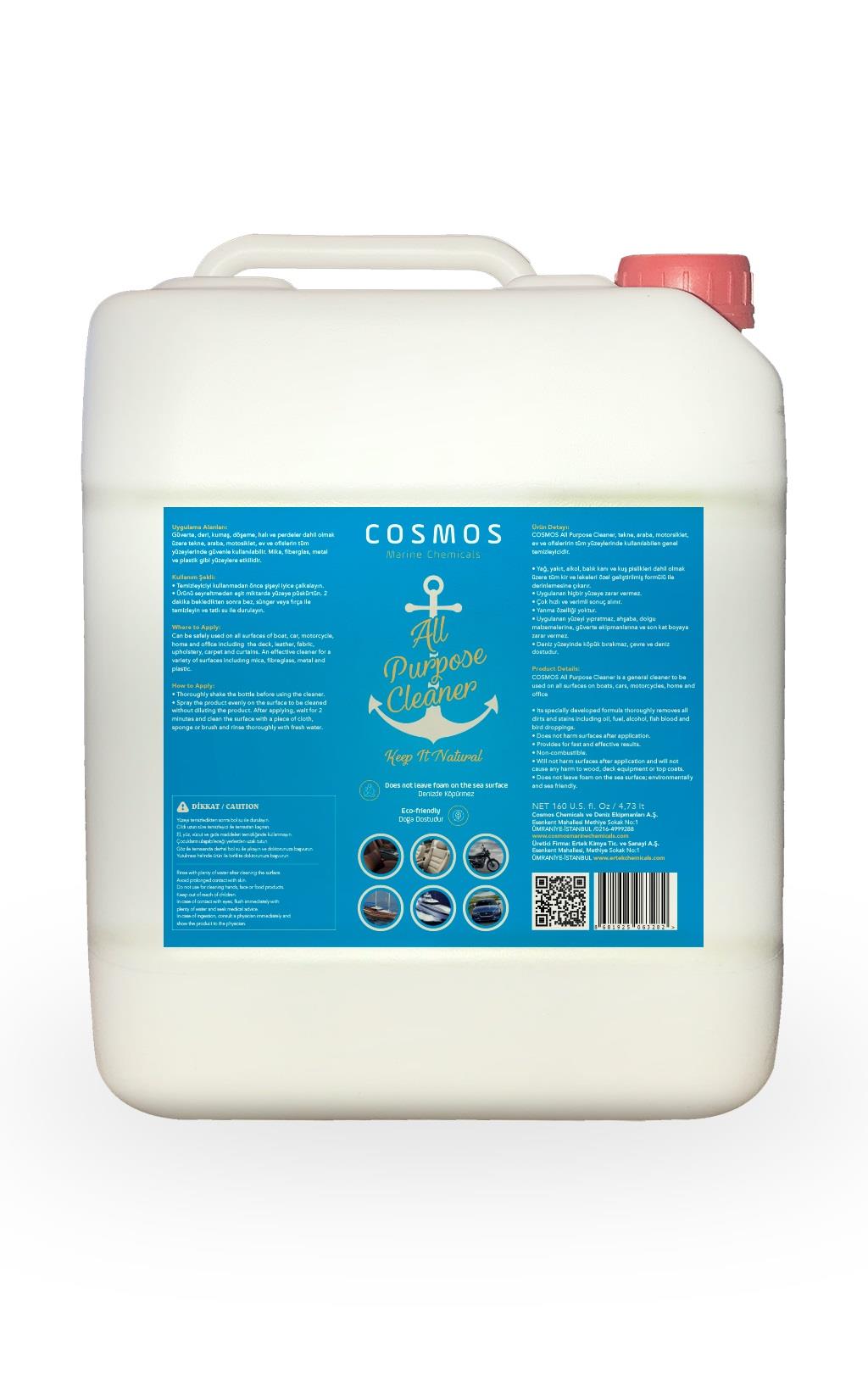 COSMOS All Purpose Cleaner, tekne, araba, motorsiklet, ev ve ofisleririn tüm yüzeylerinde kullanılabilen genel temizleyicidir.