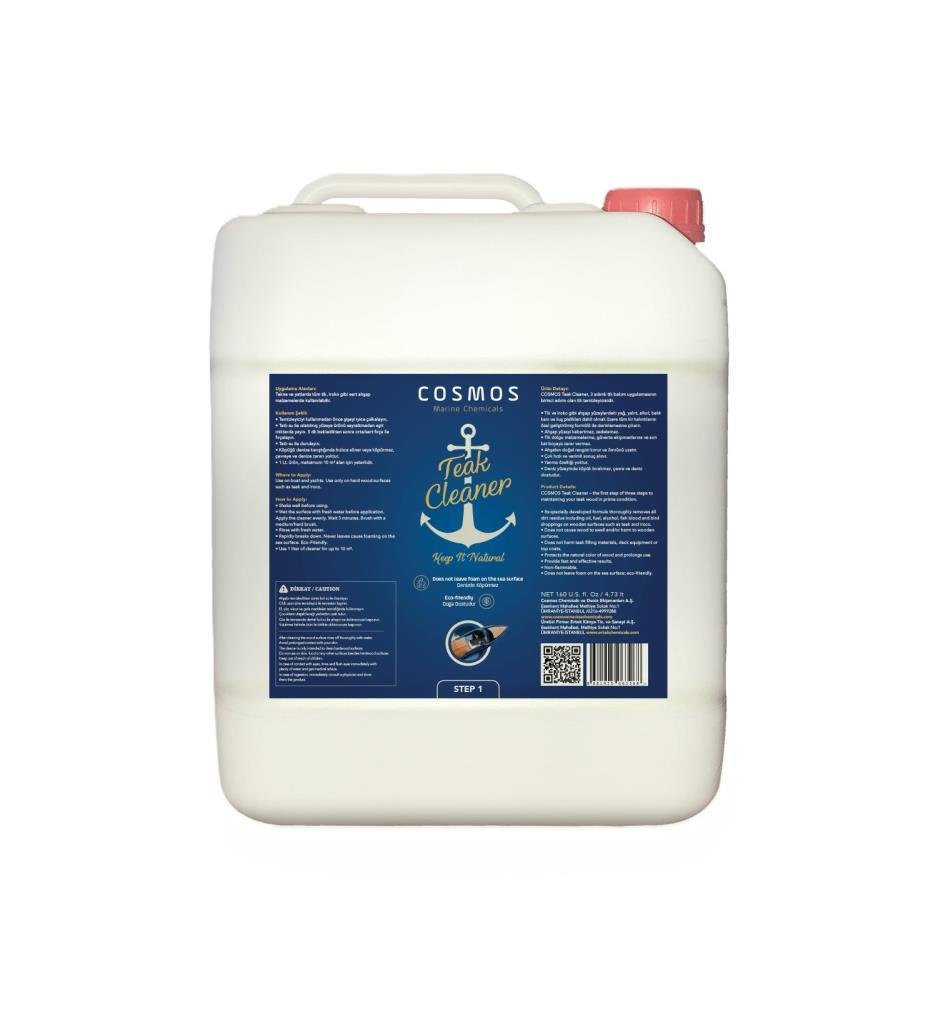 COSMOS Teak Cleaner, 3 adımlı tik bakım uygulamasının birinci adımı olan tik temizleyicisidir.