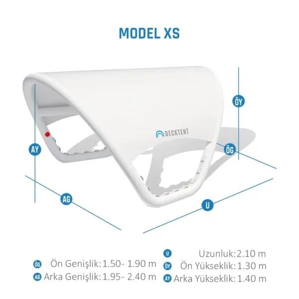 DECKTENT Bimini XS, ortalama 5 ile 8 Metreye kadar tüm deniz araçlarında gölgelik ihtiyacı için kullanılabilir.DECKTENT birkaç dakika içinde kurulabilir. Şişirin, güvertede uygun bir yere yerleştirin ve yerine sabitleyin. Bimini direğine veya özel braketlere gerek yok! Bir bimini kurmak hiç bu kadar kolay olmamıştı!