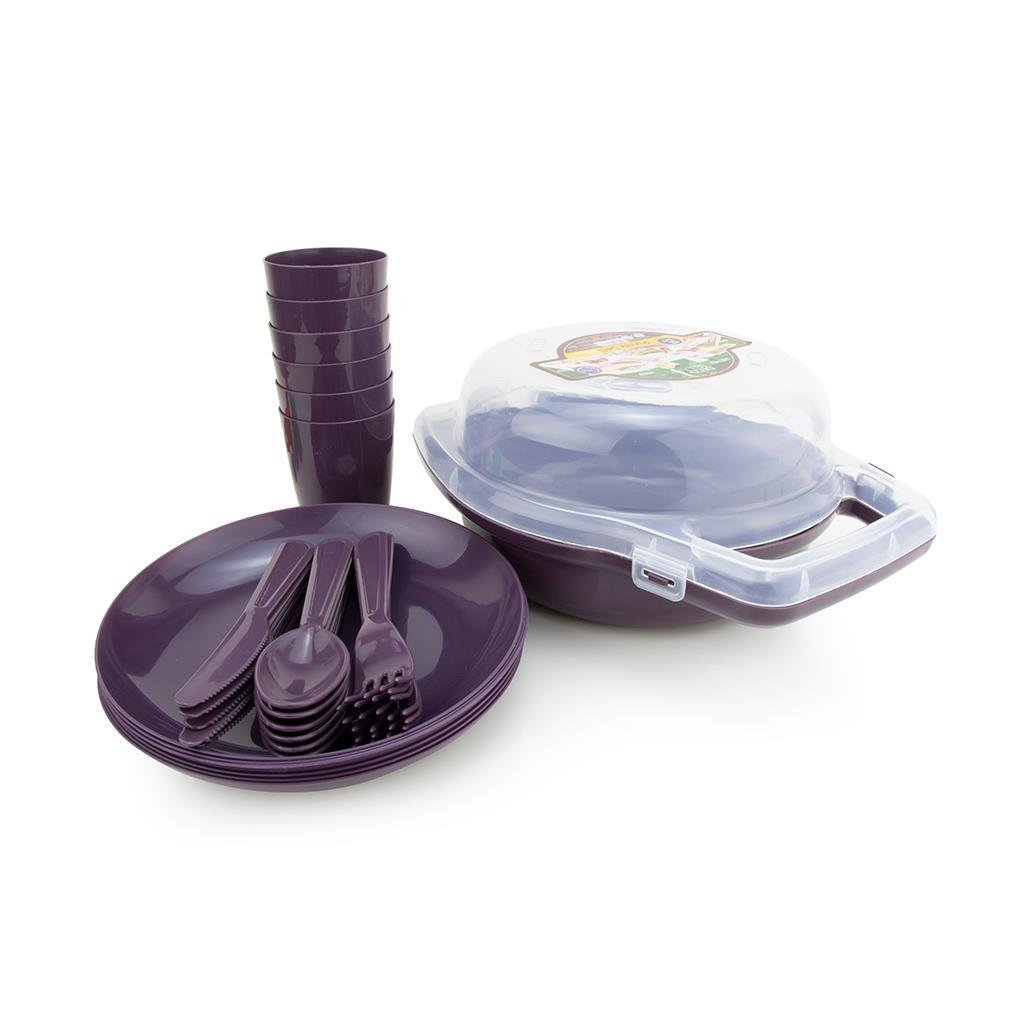 6 kişilik 32 parça piknik malzemesini tek bir taşıma kabı içinde saklar.