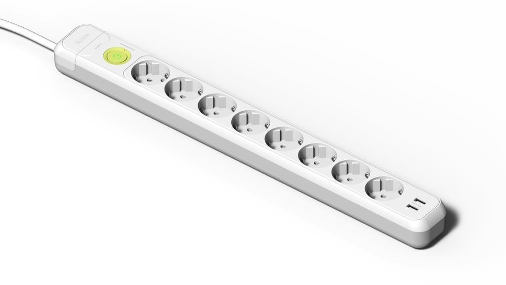 Topraklı priz, anahtar, 2 USB bağlantı noktası ve 1,5 m 3G1,5 mm2 kablo ile 8 soket tabanı;