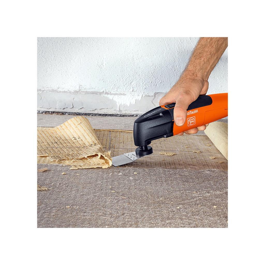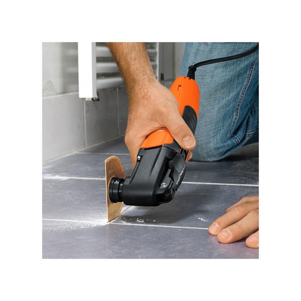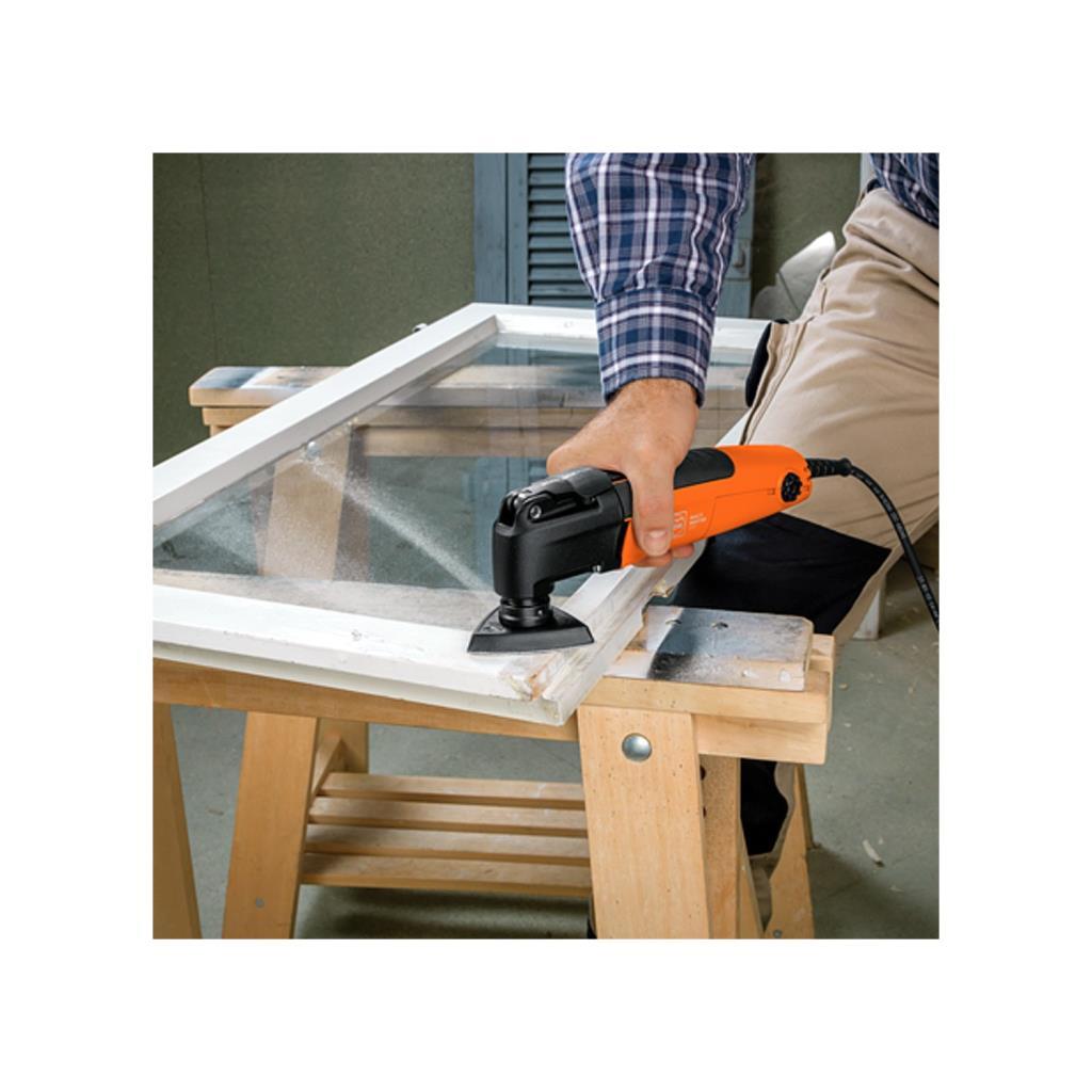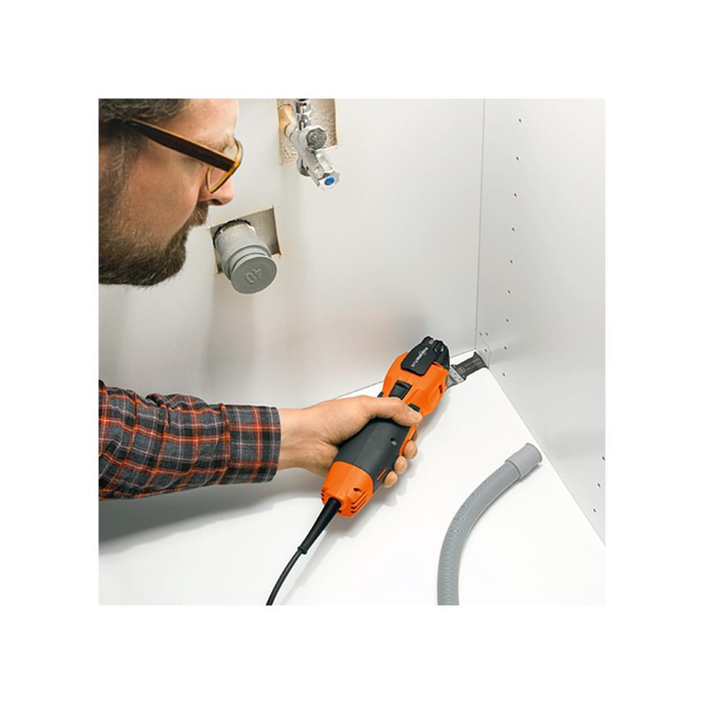 Starlockplus takım yuvalı Fein Multimaster MM500 Plus; ahşap, metaller ve plastikler için bimetal testere bıçağıyla birlikte hızlı iş akışı için tadilat ve yenileme işlerinde etkili yüksek performanslı çok amaçlı salınımlı elektrikli el aletidir.