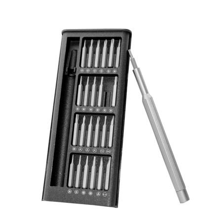 Bu çok fonksiyonlu tornavida, neredeyse tüm vidalar için uygun 24 çeşit bitle birlikte.