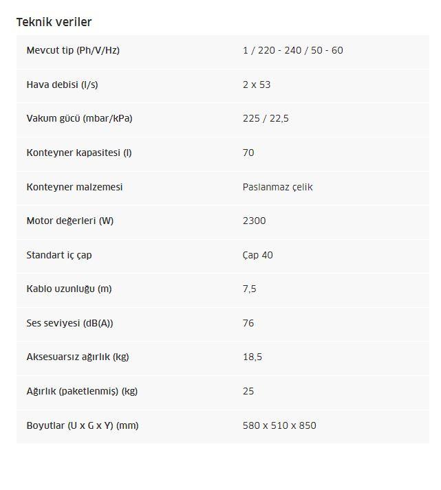 Çift motorlu NT 70/2 Me Classic ıslak ve kuru elektrikli süpürge, 70 litrelik haznesi ile yüksek miktarlarda ıslak ve kaba kiri süpürebilir. Elektrikli süpürge, yüksek emiş gücü ve yüksek verimli kartuş filtresi ile her türlü toz, sıvı ve kaba kiri hafifletmektedir. Dahası, sağlam elektrikli süpürge, pratik bir tahliye hortumu ile donatılmıştır. Elektrikli süpürge, itme kolu ve metal tekerlekli son derece sağlam şasi sayesinde olağanüstü hareket kabiliyeti sunar.