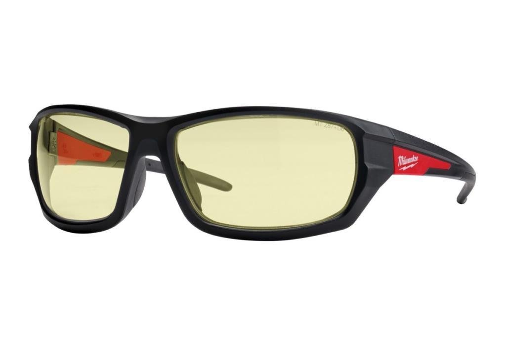 Dayanıklı, çizilmez sarı lenslere sahip, Milwaukee'den konforlu bir çift performans güvenlik gözlüğü.