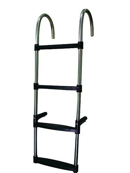 Paslanmaz çelik tutamaklardan ve siyah renkli kaymaz polipropilen basmaklardan üretilmiştir. Tekne gövdesinden destek alarak durmasını sağlayan iki adet ayakla desteklenmiş olan merdivenlerin kancaları kolay saklanabilmeleri için katlanabilir olarak üretilmiştir. Merdivenin montesi için gerekli olan iki adet mesnet, merdiven ile beraber satılmaktadır.