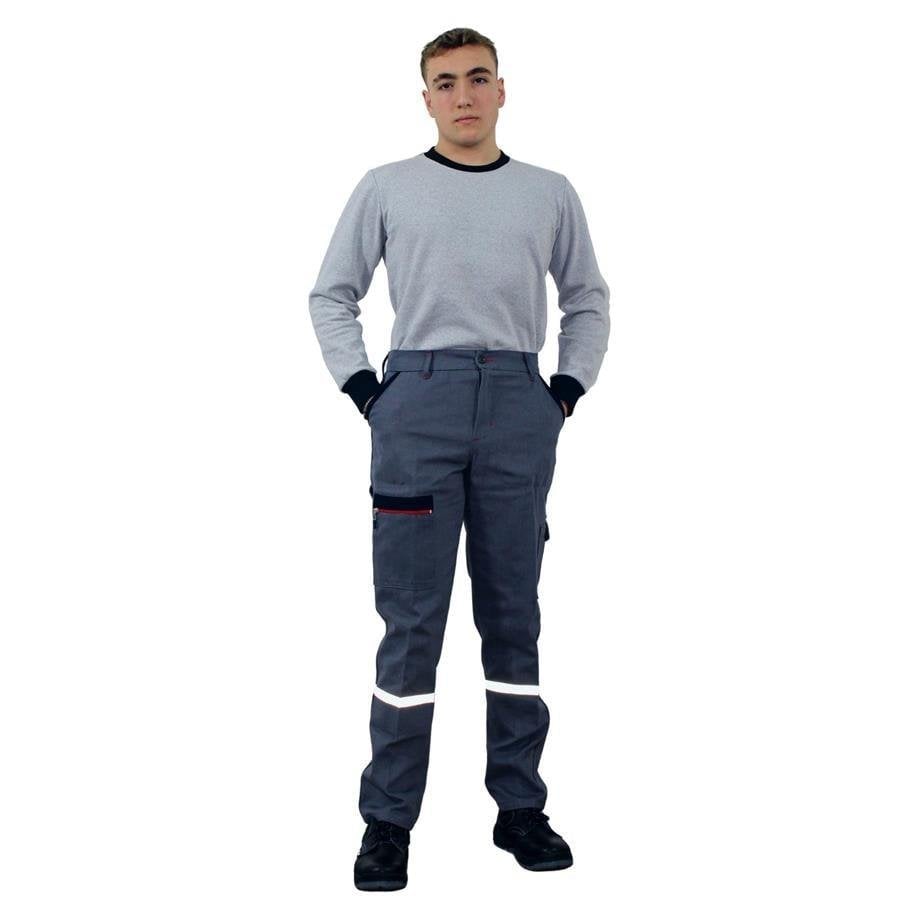 Persmont PF04K Unisex Gri Fermuarlı Gabardin Kışlık Pantolon ürünleri %100 pamuk, 7/7 gabardin kumaştan üretilmiştir. Özellikle iş elbiseleri imalatında kullanılan 7/7 gabardin kumaş kalın yapısıyla kışlık kullanımlara uygun üretilmiştir. Ürün paçaları 2 cm reflektör şeritli.