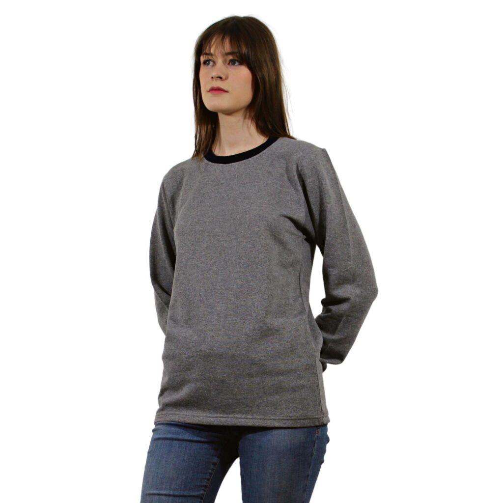 Persmont ÜBS01K Unisex Füme Üç İplik Sıfır Yaka Sweat ürünleri %60-70 pamuk, %30-40 polyester üç iplik kumaştan üretilmiştir. Kumaş içerisi şardonlu kumaş detayı ile oluşturulmuştur. Bu sayede soğuklara karşı koruyucu özelliği bulunmaktadır.