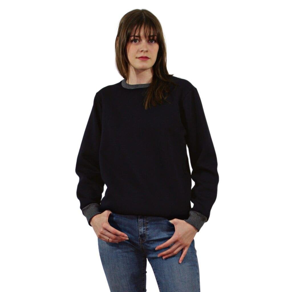 Persmont ÜBS06K Unisex Lacivert Üç İplik Sıfır Yaka Sweat ürünleri %60-70 pamuk, %30-40 polyester üç iplik kumaştan üretilmiştir. Kumaş içerisi şardonlu kumaş detayı ile oluşturulmuştur. Bu sayede soğuklara karşı koruyucu özelliği bulunmaktadır.