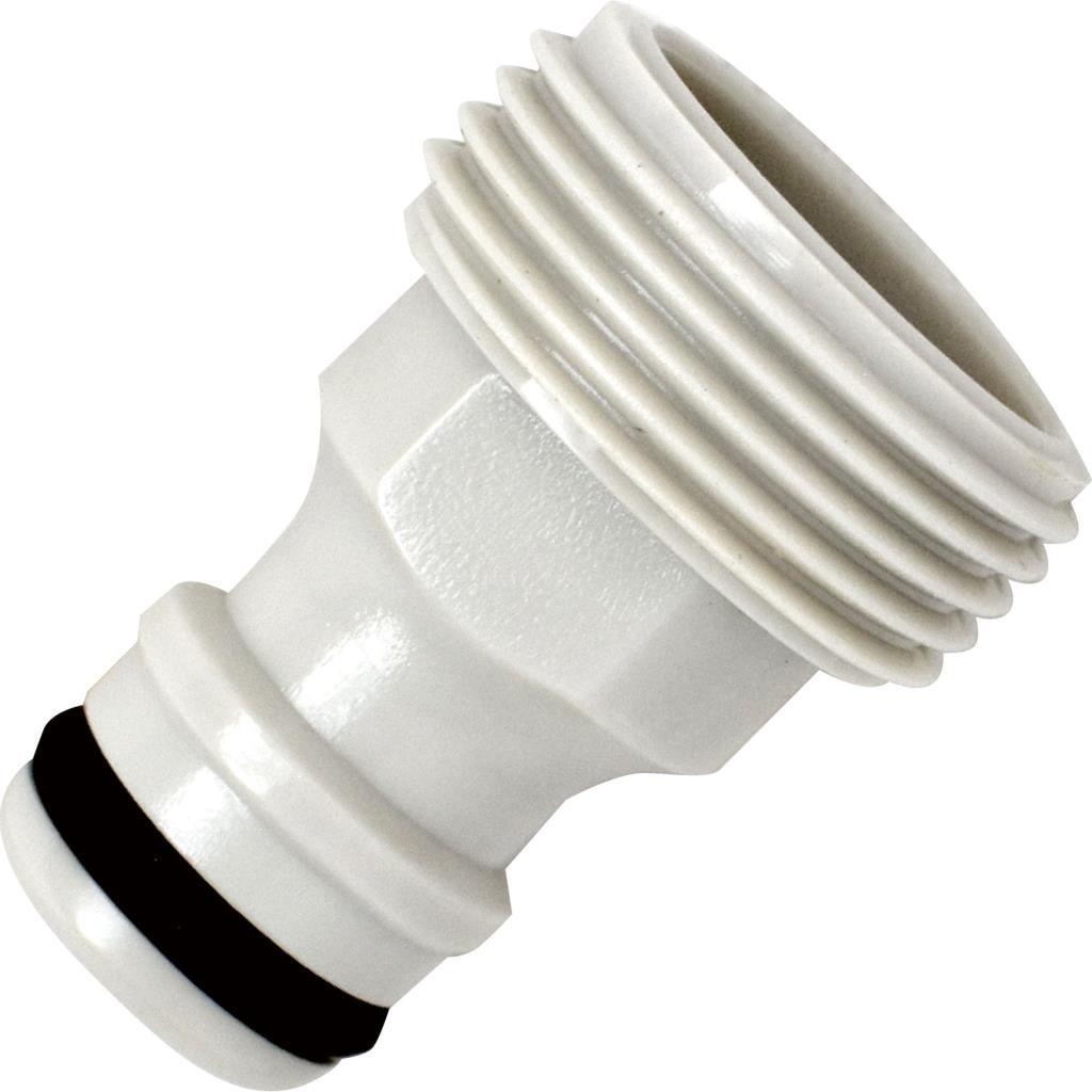 Sağlam, kaliteli ve dayanıklı plastikten imal edilmiş erkek musluk bağlantısı.
