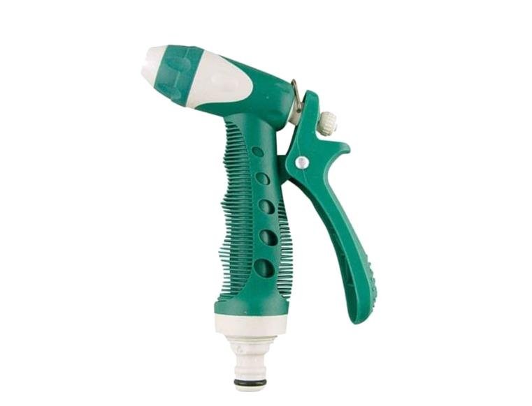 • Atım ayarlı, yumuşak tutamaçlı sivri uçlu plastik hortum tabancası.