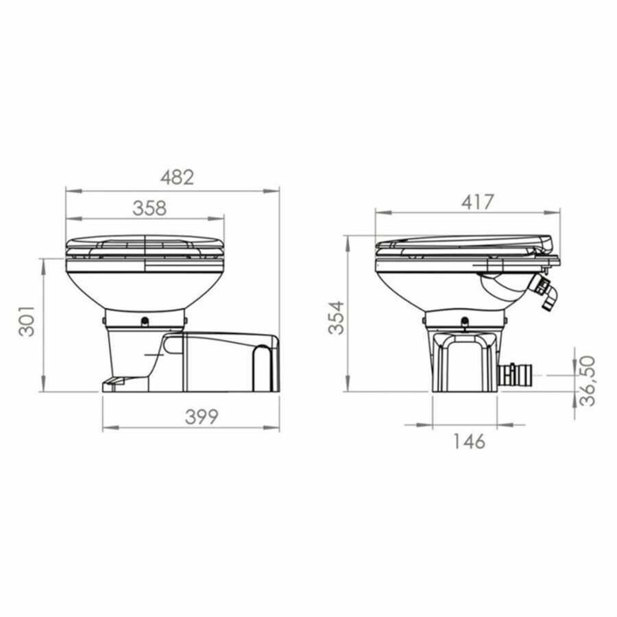 Enjeksiyon kalıplı kasesi, tüm deniz tuvaletleri arasında en hafif olanıdır. Ayrıca herhangi bir konuma yerleştirilebilir. Hem ağırlığı azaltmaya çalışmak hem de teknelerde yerden tasarruf etmek söz konusu olduğunda, bunların ikisi de büyük avantajlardır.