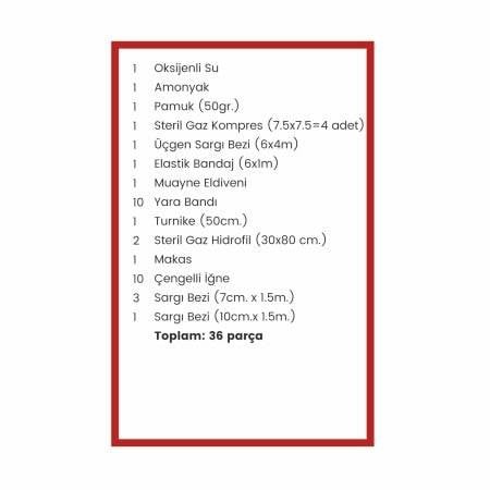 İçeriği : 36 parça ilk yardım malzemesi