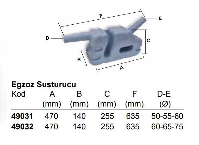 Ø 50-55-60 mm ve 60-65-70 mm egzoz hortumlarına uygulanabilir.