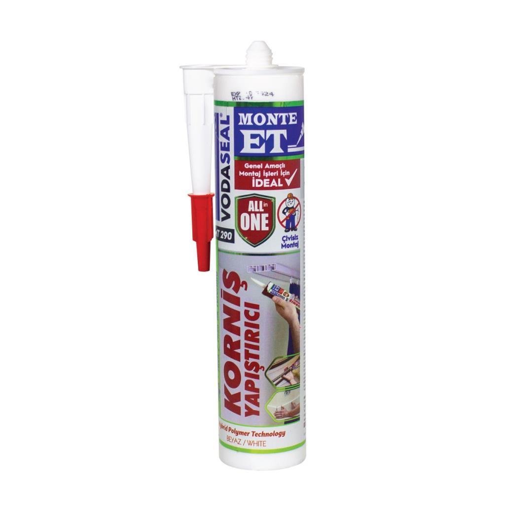 VODASEAL MONTE ET PRO YAPIŞTIRICI, SIZDIRMAZLIK MACUNU VE DOLGU MACUNU Hybrid polimer teknolojisi kullanılarak geliştirilen çok yönlü ürün, çok çeşitli yapıştırma, yalıtım, sızdırmazlık ve boşluk doldurma uygulamaları için mükemmeldir. Emici veya emici olmayan tüm yüzeyler için uygundur. Vodaseal Monte Et, yüksek mukavemetli bir inşaat yapıştırıcısı, su geçirmez bir yalıtım/sızdırmazlık macunu ve çekme/çatlama yapmayan bir dolgu macunudur. Hava şartlarına dayanıklıdır, iç mekan ve dış mekan uygulamalarına uygundur. Üzeri boyanabilir. Beyaz renktedir. Tam kuruma süresi 24 – 48 saattir.